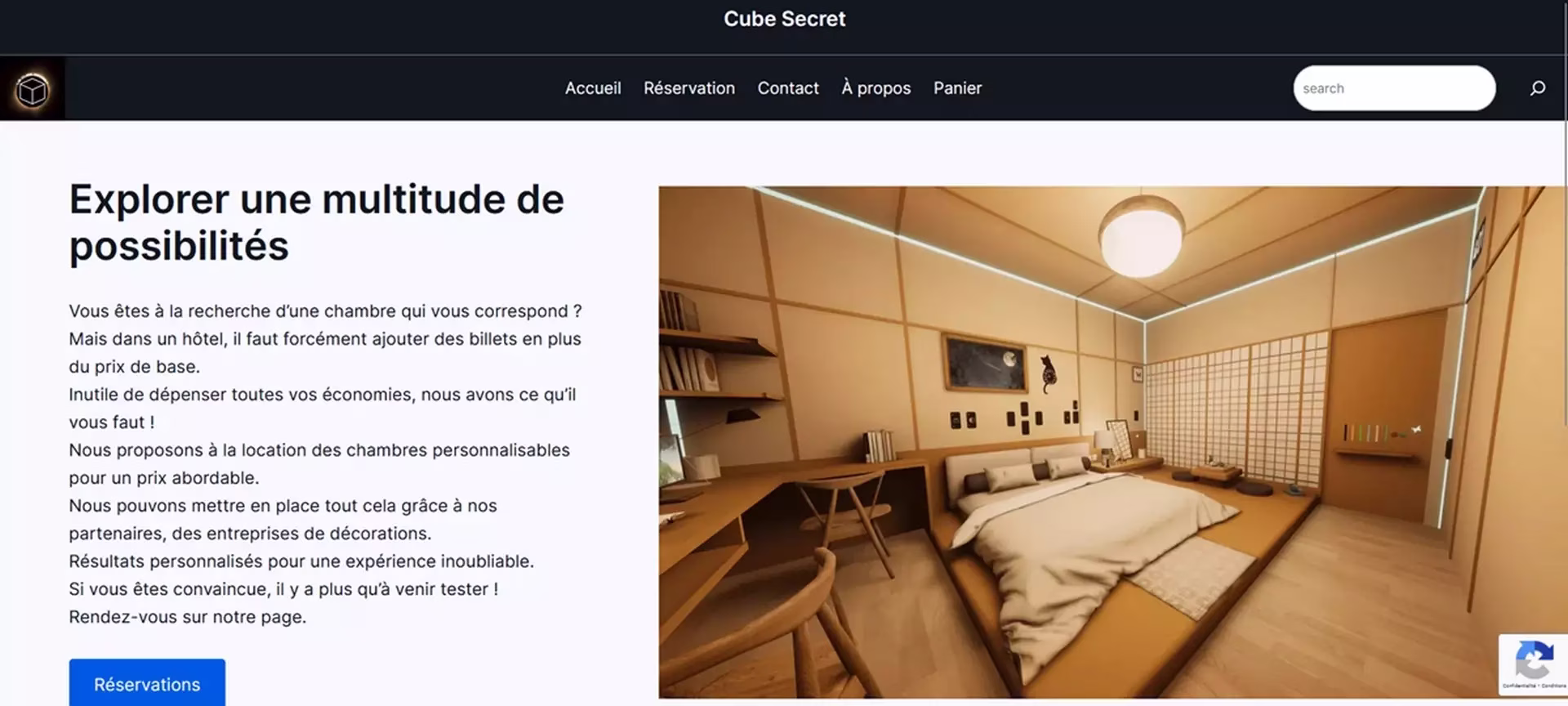 Site e-commerce fictif de réservation de chambres à thème développé dans le cadre d’un travail pratique (TP) de première année de formation bac +3 (Licence/Bachelor en Informatique). Le projet simule une entreprise de location de chambres personnalisables avec un système de réservation complet.
